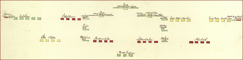 or red squares are the cavalry squadrons with each square marking a company. In the middle are three infantry brigades, each with four squadrons.